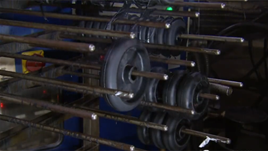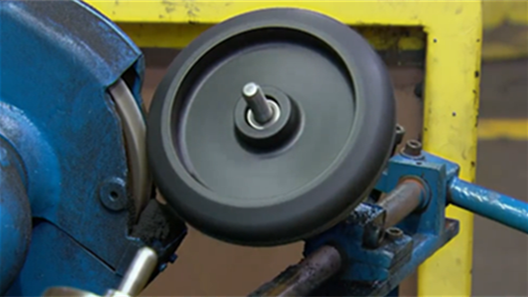 • Резиновые колеса: Впрыск расплавленной резины в формы, охлаждение и полировка.