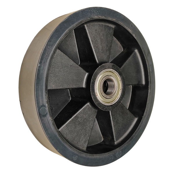 Известна своим отличным сцеплением, поглощением ударов и тихой работой. Колесные опоры с резиновыми колесами идеально подходят для применений, где важны снижение шума и защита пола, например, в медицинских учреждениях и торговых зонах. Они обеспечивают плавное, бесшумное движение и защищают полы от повреждений, что делает их подходящими для использования в чувствительных внутренних помещениях.