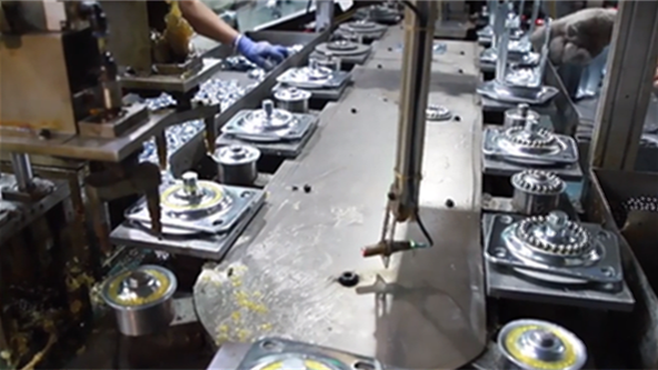 • Сборка корпуса: Установка стальных шарикоподшипников, крепление деталей и сборка верхней крышки с корпусом колесной опоры.